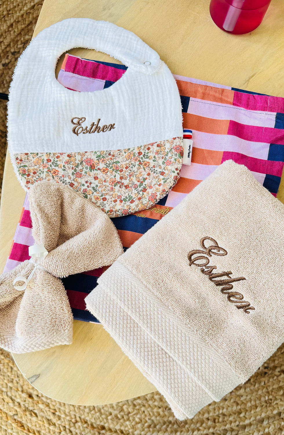 « Un travail de qualité ! Mon amie et collègue était émerveillée ! Le panier naissance était magnifique. Mille mercis Yesmine ! »
